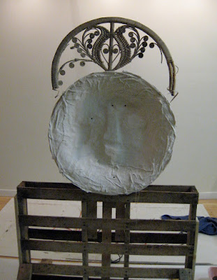 Here's a back side shot showing how I attached the plaster disc to stakes. The fun of this kind of construction is that it's quick, it only has to last a short while.
